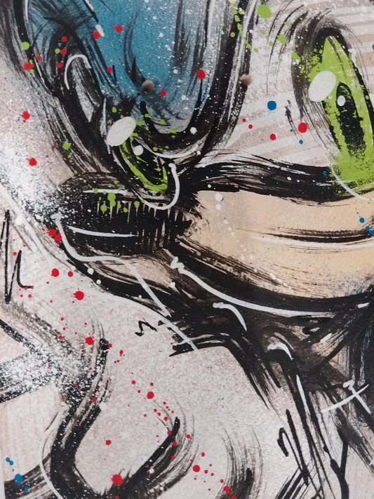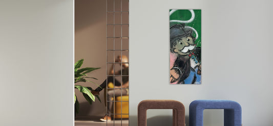 Zokoe23 is a contemporary British artist whose work captures the intersection of graffiti culture and modern nostalgia. With roots in the street and a studio practice that brings precision to raw energy, his pieces reflect a unique blend of chaos, clarity, and cultural memory. His work is instantly recognisable for its explosive colour, animated mark-making, and the reimagining of iconic characters through a distinctly urban lens.