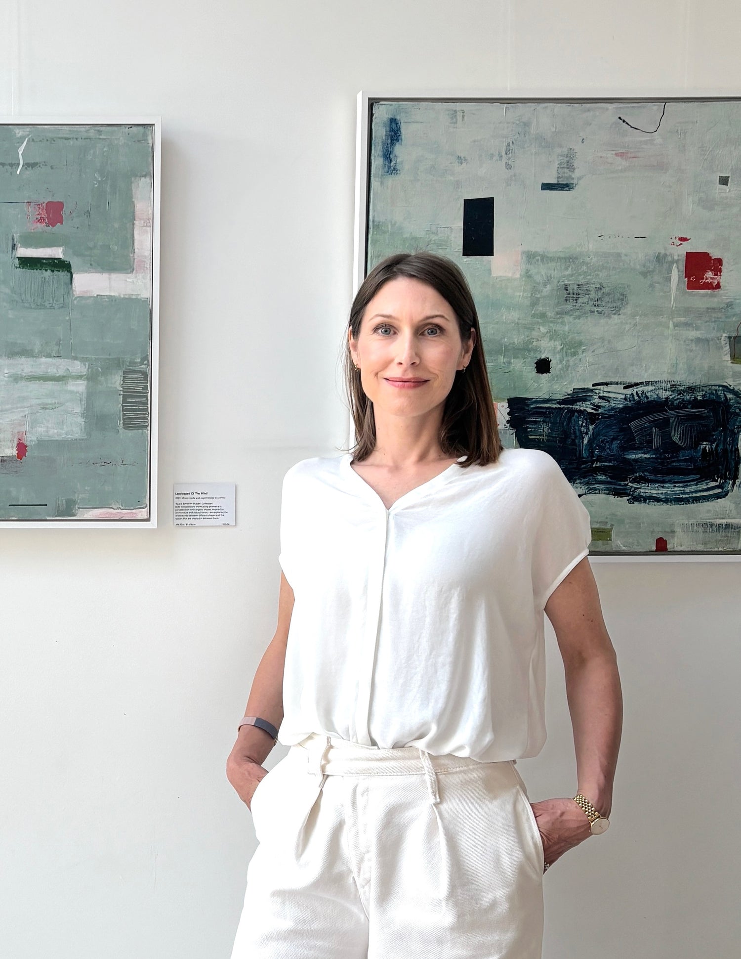 I work primarily with acrylic paint, utilising scrapers as the first tool of choice. My process involves multiple layers of marks made with various objects, and fabric or paper collage.