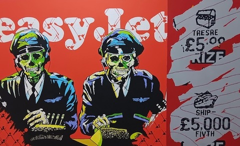 Working on a large scale, my paintings are constructed with traditional processes using oil and acrylic paint, but also incorporate stencils, screen-print and airbrush work to build up a ‘collage’ aesthetic in which multiple image sources cross-pollinate. Some of the images I use are personal, some universal, and though the final composition can be ambiguous there is a sense of an underlying narrative – often with a social commentary. Consumerism and the visual language of advertising – both current and historic – are prominent in my works, which therefore often have a playful, absurd quality on first viewing, but which subsequently reveal a more ambiguous and sometimes provocative perspective on the world around us. Within my latest work, the narratives I create operate by key images in a ‘resting place’ that is alien to them, confusing the source image. This approach is a generative act, rejecting old certainties and opening up new meanings and ways of understanding postmodern culture.