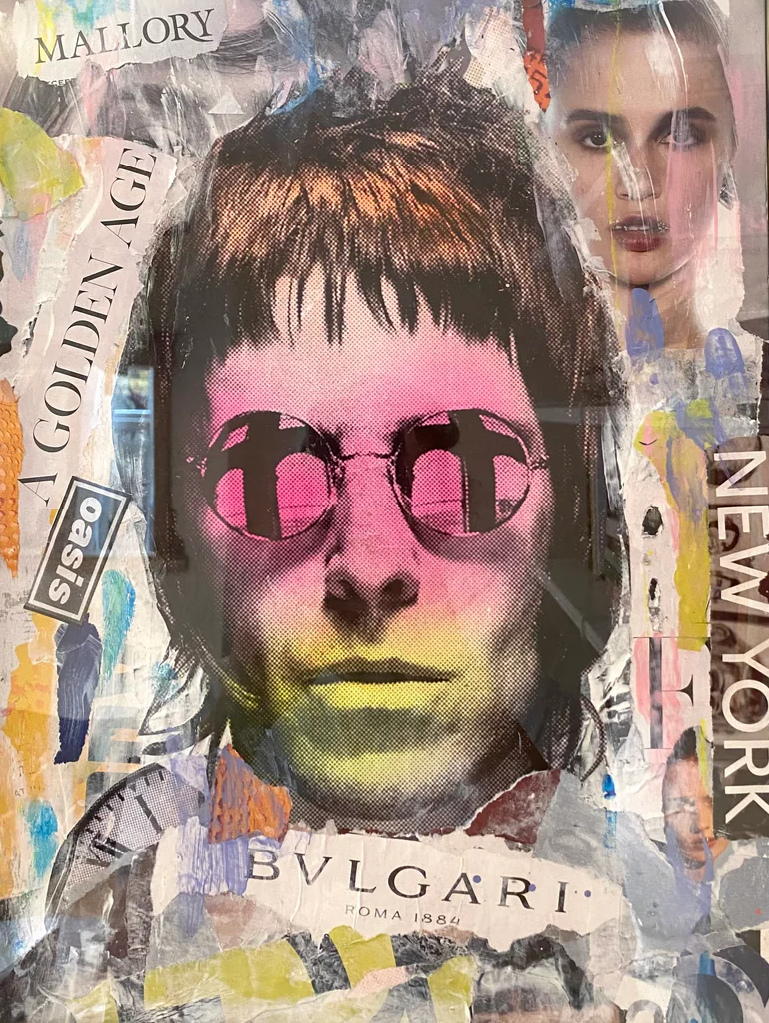 Golden Age channels Jagger66’s signature urban-pop collage style into a punchy, layered commentary on fame, fashion, and culture. The work feels like a snapshot of contemporary visual noise: advertising, identity and iconography colliding in a single energetic frame.