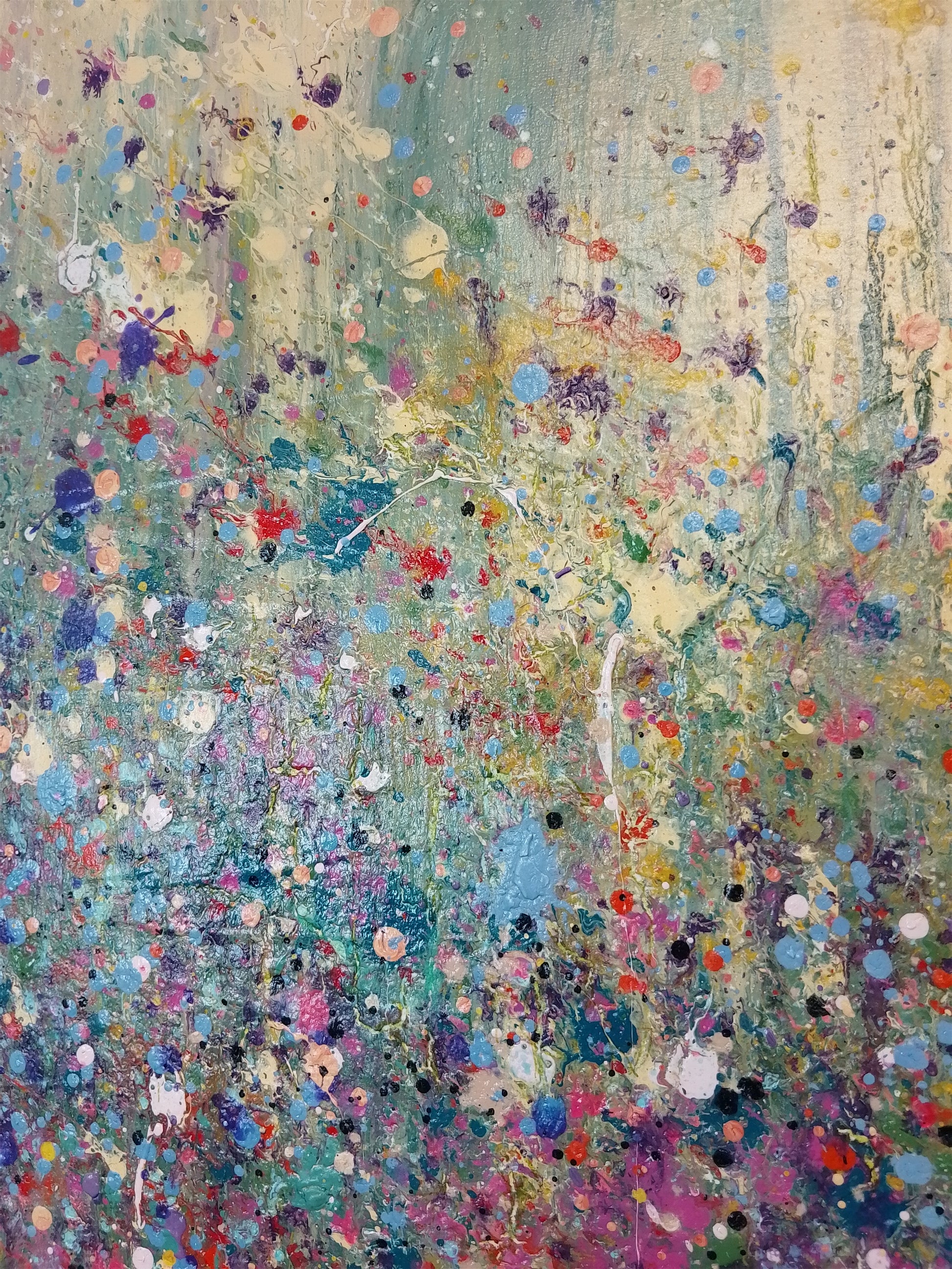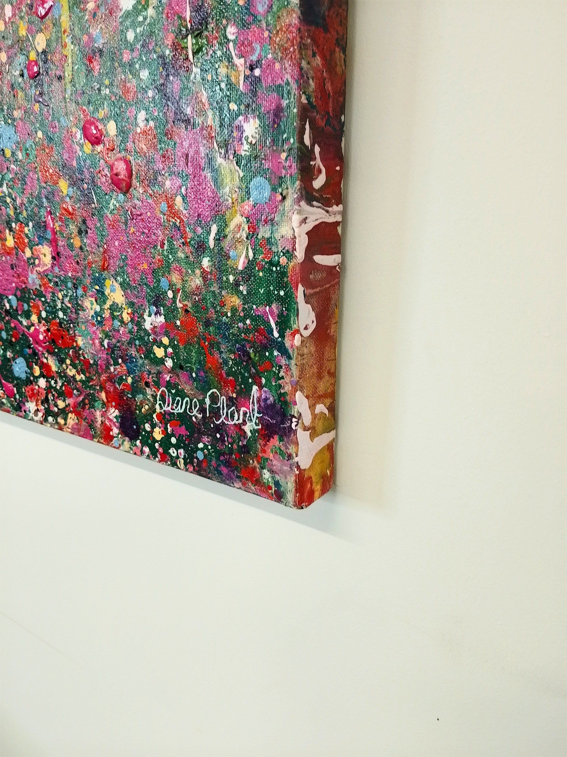 Misty Morning Meadows is a mesmerizing explosion of colour and texture, evoking the fresh vibrancy of a meadow waking up to a misty sunrise. This hand-painted acrylic piece is rich in depth and movement, offering a focal point that enhances any space with its lively, uplifting energy. Layers of soft greens, warm yellows, and bursts of pink, purple, and white create a dynamic interplay, mimicking the natural beauty of wildflowers swaying in the morning breeze.