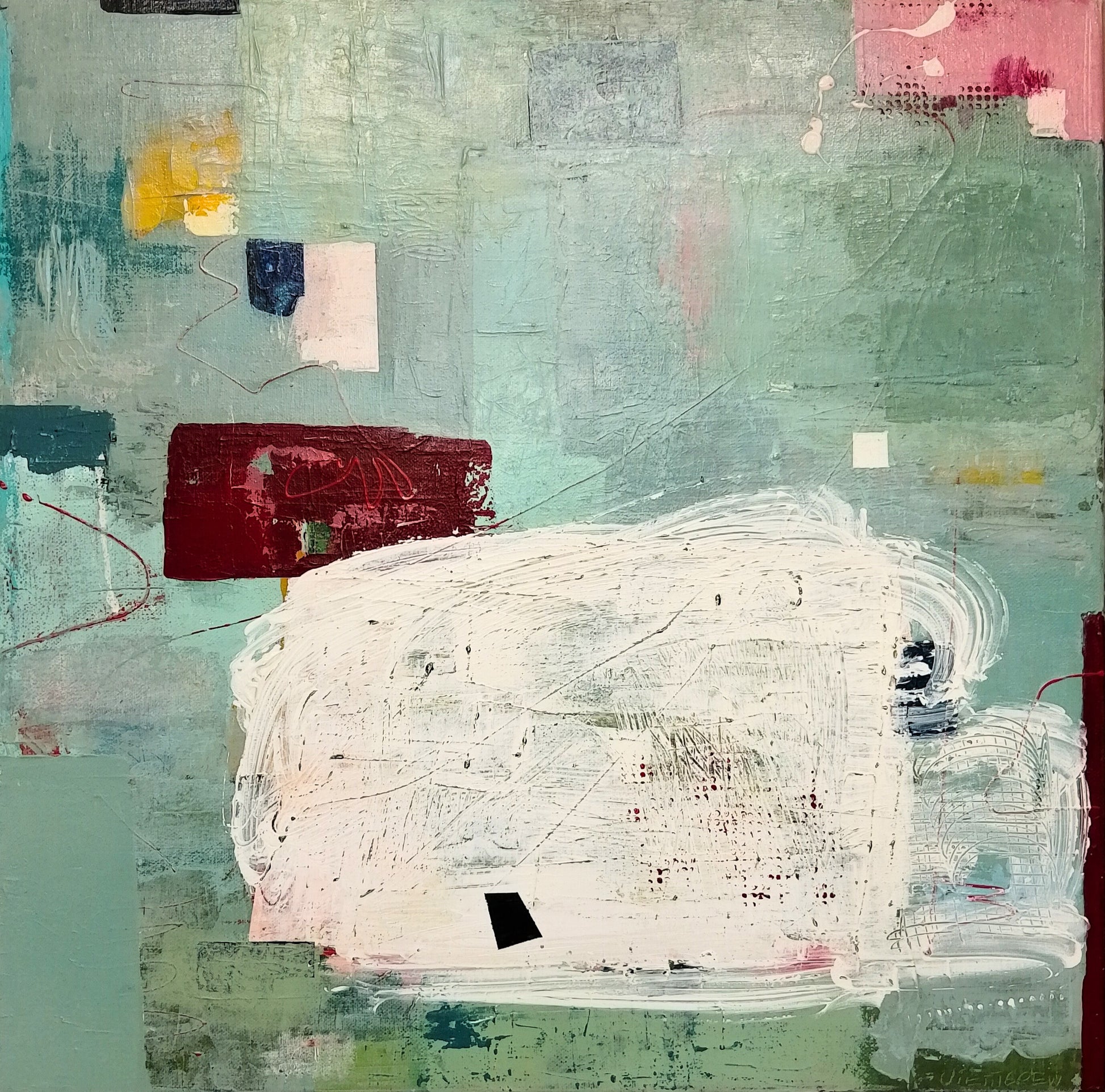 • Medium: Acrylic paint and pastels on canvas. Buffed cold wax finish