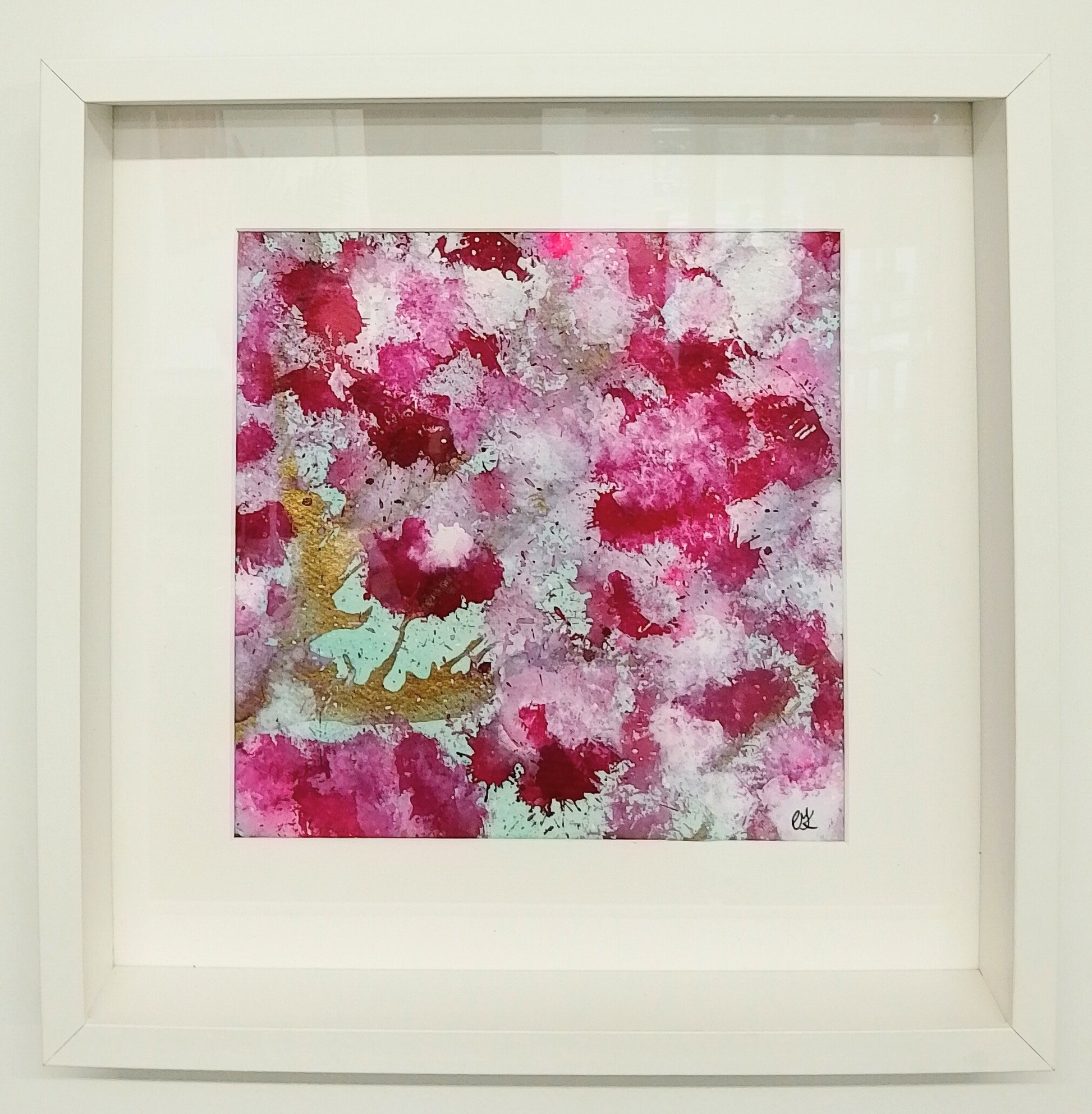 “Pastel Blossoms 2” immerses the viewer in a dreamlike cascade of color — a blooming field suspended somewhere between memory and imagination. Layers of rose, mauve, and plum wash over the canvas in soft clouds of pigment, punctuated by flashes of pale mint and gold that shimmer like sunlight through petals. The effect is atmospheric yet intimate, as if you are standing inside the very essence of spring.