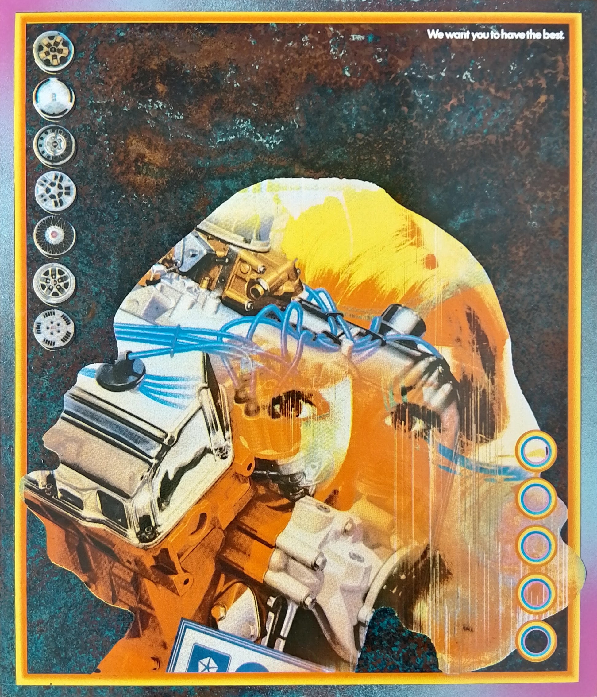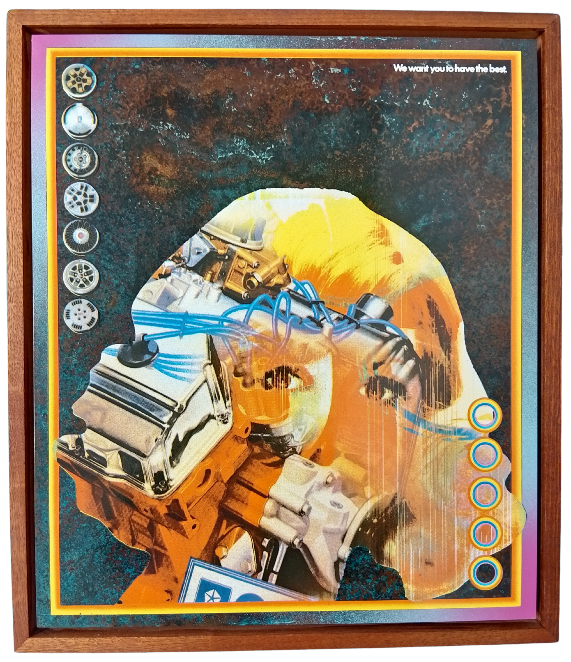The contrast between precision-built mechanics and painterly, sunlit strokes introduces a tension that feels both urgent and optimistic. It’s a work that rewards contemplation —layered yet emotionally grounded in the simple human desire, as the cheeky text suggests “to have the best.”