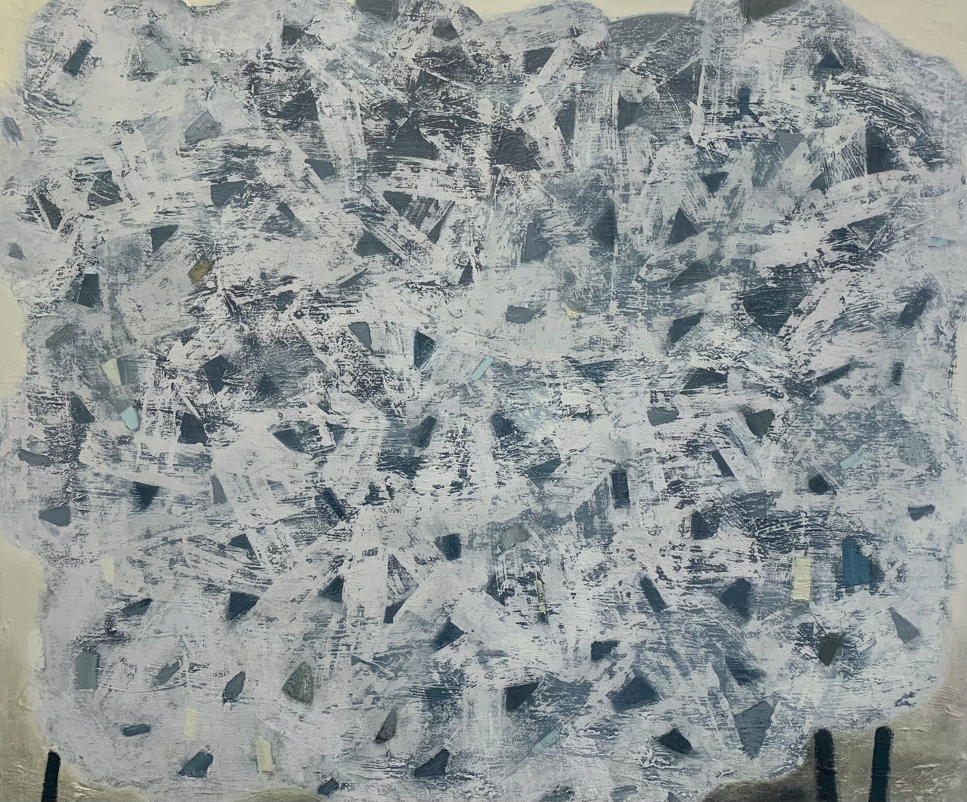 Scraped layers, repeated strokes, and embedded flecks of colour give the work a dynamic sense of movement, capturing the meeting point between the natural and the built environment. Despite its abstraction, the piece suggests renewal, growth, and the traces of life that persist within the city’s harder edges.
